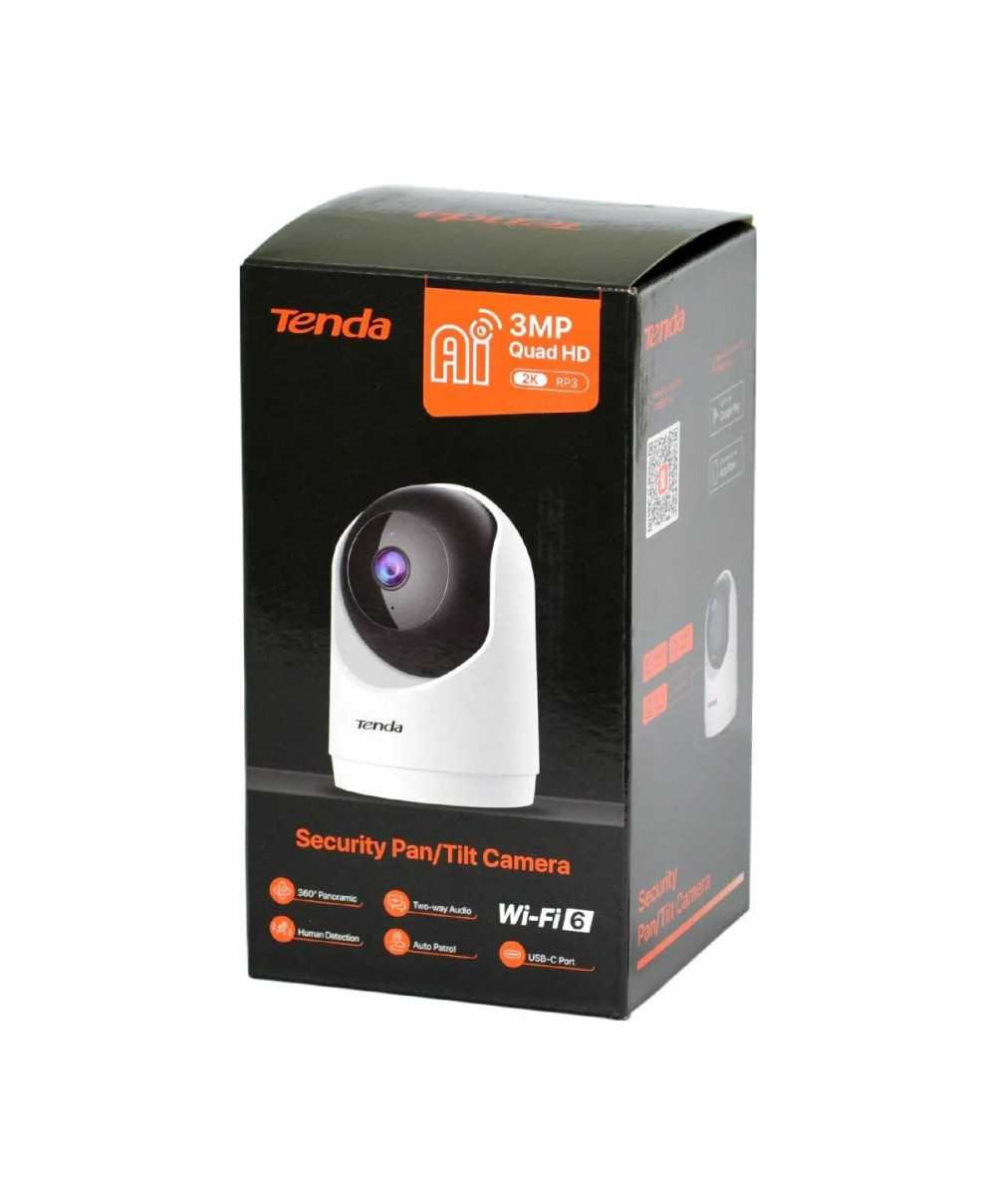 - Tenda CP6 je IP kamera, zasnovana za domačo, notranjo uporabo.  - Podpira Wi-Fi prenos. - Največja ločljivost snemanja je 2034x1296px, goriščna razdalja 4 mm.  - Kamera se lahko vrti za 360° vodoravno, 90° navpično navzgor in 65° navpično navzdol.  - Napravo lahko upravljate z aplikacijo TDSEE, ki je na voljo za Android/iOS.  - Konfiguracija in kasnejša uporaba je zelo preprosta, z nastavitvami bi se moral spoprijeti tudi neizkušen uporabnik.  - CP6 ima vgrajen zvočnik in mikrofon, omogoča dvosmerno glasovno komunikacijo.  - Vrtenje kamere lahko uporabite za patruljiranje določenega območja (kamera se vrti, da pokrije čim večje območje) ali za sledenje cilju.  - Ponujeni izdelek podpira inteligentno funkcijo za samodejno prepoznavanje oseb, po prepoznavi se lahko oseba obravnava kot tarča, na katero se bo CP6 osredotočil.  - Dodatna prednost je alarmna funkcija - po njeni aktivaciji naprava odda svetlobni in zvočni signal, da prestraši vsiljivca.  - Kamera je opremljena z režo za microSD (največja kapaciteta kartice: 128 GB), ki jo lahko uporabite za snemanje posnetkov. - Garancija 36 mesecev - Velikost izdelka: 103 mm x 88 mm x 88 mm - https://www.tendacn.com/product/CP6.html- Info proizvajalca / Odgovorna oseba EU - VICOM d.o.o. Miklavčeva ul.7, 2000 MB, Slovenija, info@vicom.si