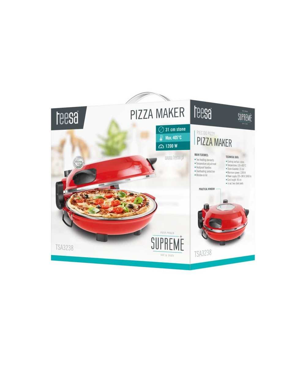- Glavne značilnosti - 6 programov peke pic: tanko testo, neapeljska, pica iz ponve, po meri, new york, zamrznjena - 6 programov pečice: žar, dehidracija, pečenje v pečici, peka v pečici, ohranjanje toplote, pečenje na žaru - Dodatne funkcije: način za strokovnjake za pice, dimljenje - Časovnik - Samodejni izklop - LED zaslon - Upravljalna plošča na dotik - Dva grelna elementa - Zaščita pred pregrevanjem - Notranja osvetlitev - Okno v ohišju, ki omogoča opazovanje postopka pečenja - Ročaj, hladen na dotik - Nedrseče nogice - Tehnični podatki: - Površina za peko: keramični kamen - Dimenzije kamna: 33 x 33 x 10 cm - Temperaturno območje: 60°C – 450°C - Material:   - Vrata: nerjaveče jeklo, dvojno steklo, plastika   - Ohišje: kovina - Največja moč: 2200 W - Napajanje: 220 ~ 240 V; 50/60 Hz - Vključeno: kamen, kamnita rešetka, lopatica za pico - Teža: 11,8 kg - Dimenzije: 495 x 455 x 276 mm - Dolžina kabla: 80 cm - Garancija 12 mesecev - Varnostna slika izdelka- Info proizvajalca / Odgovorna oseba EU - Lechpol Electronics Leszek Sp.k., Miętne, ul. Garwolińska 1, 08-400 Garwolin, sprzedaz@lechpol.pl
