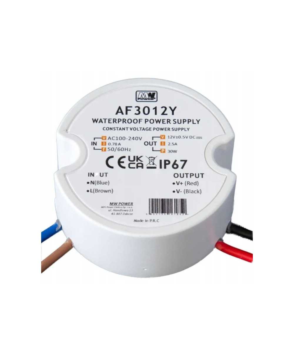 PLASTIC AF3012Y Plug Power Round, IP67, 30W 12V/2.5A