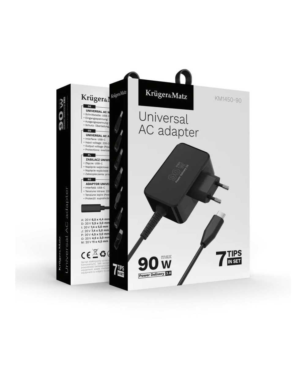 Kruger-Matz laptop power supply, 90W, PD3.0, 7 attachments