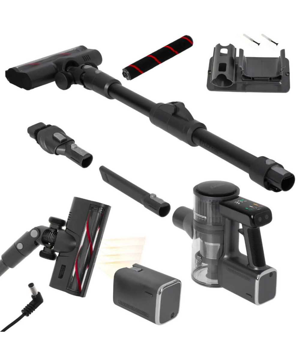 - LED SKENER PRAHOV Električna krtača za trda tla: Širina valja 22 cm, opremljena s sistemom za zbiranje dlak in dlak z valja krtače ter gumijastimi kolesi, ki ščitijo tla.