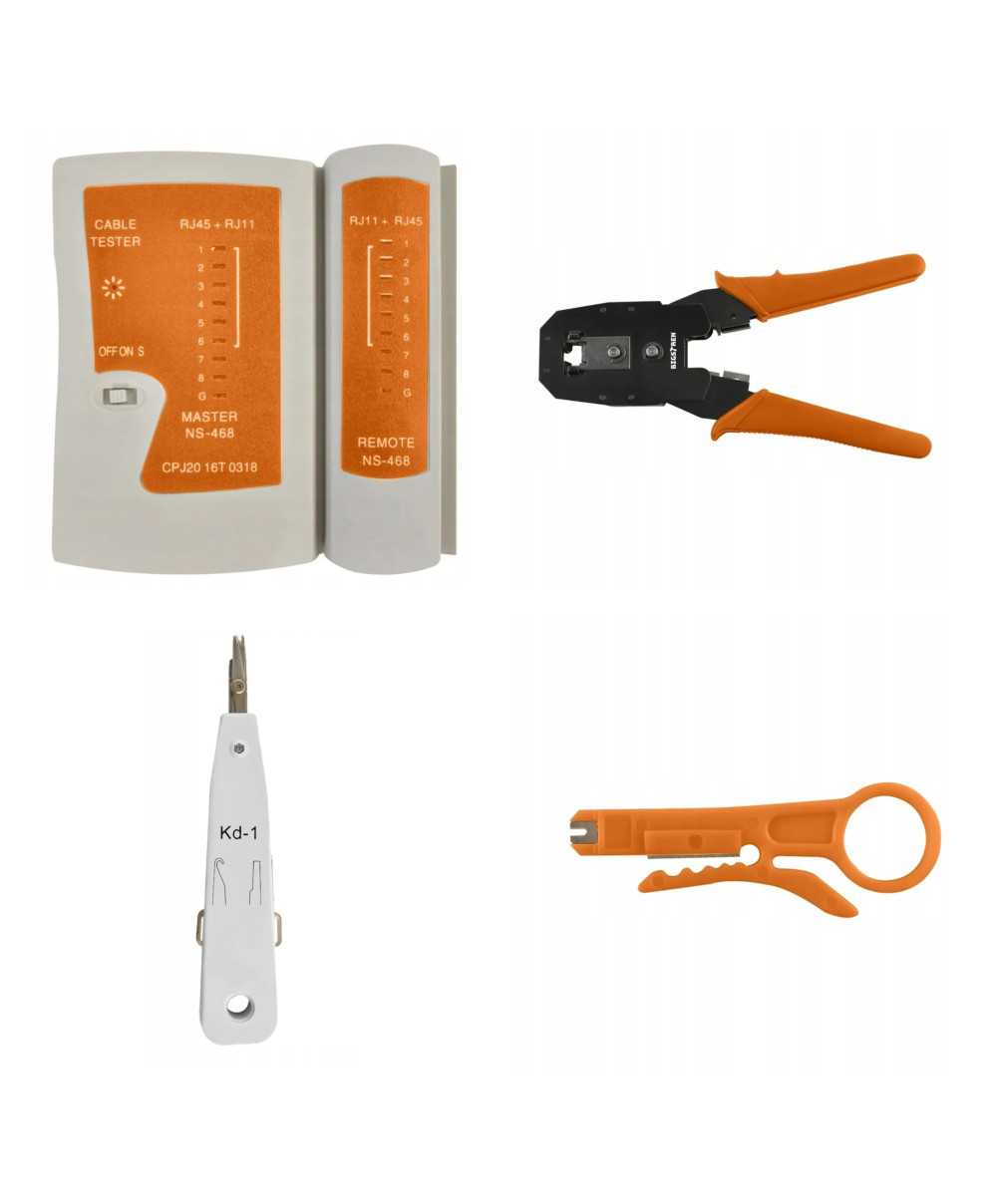 - 9-delni komplet omrežnih orodij za izdelavo omrežnih in telefonskih kablov.