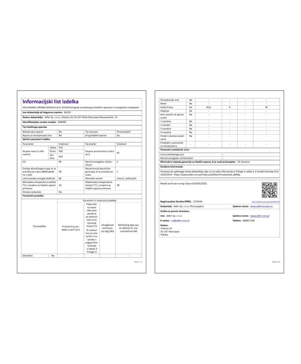 - Neto prostornina: 45 litrov - odlično za shranjevanje pijač in osnovnih živil